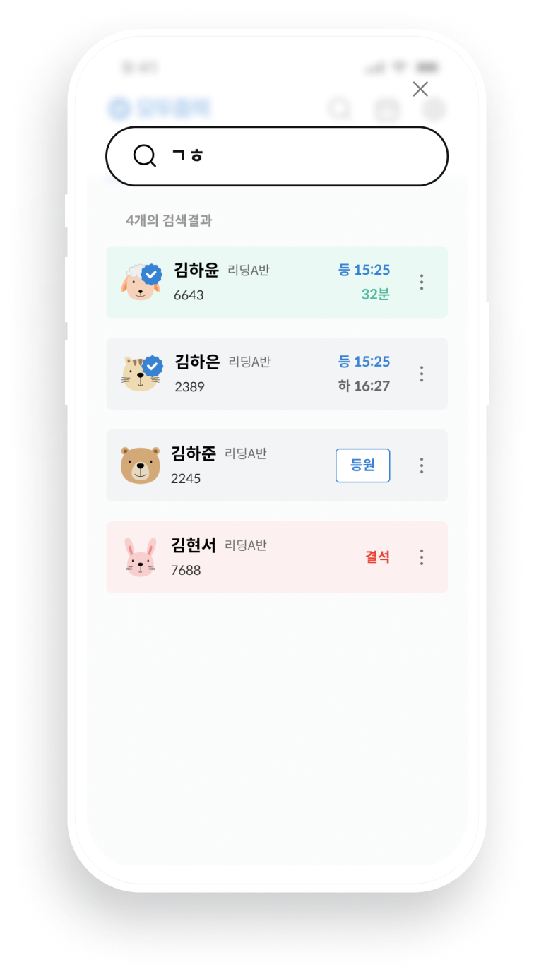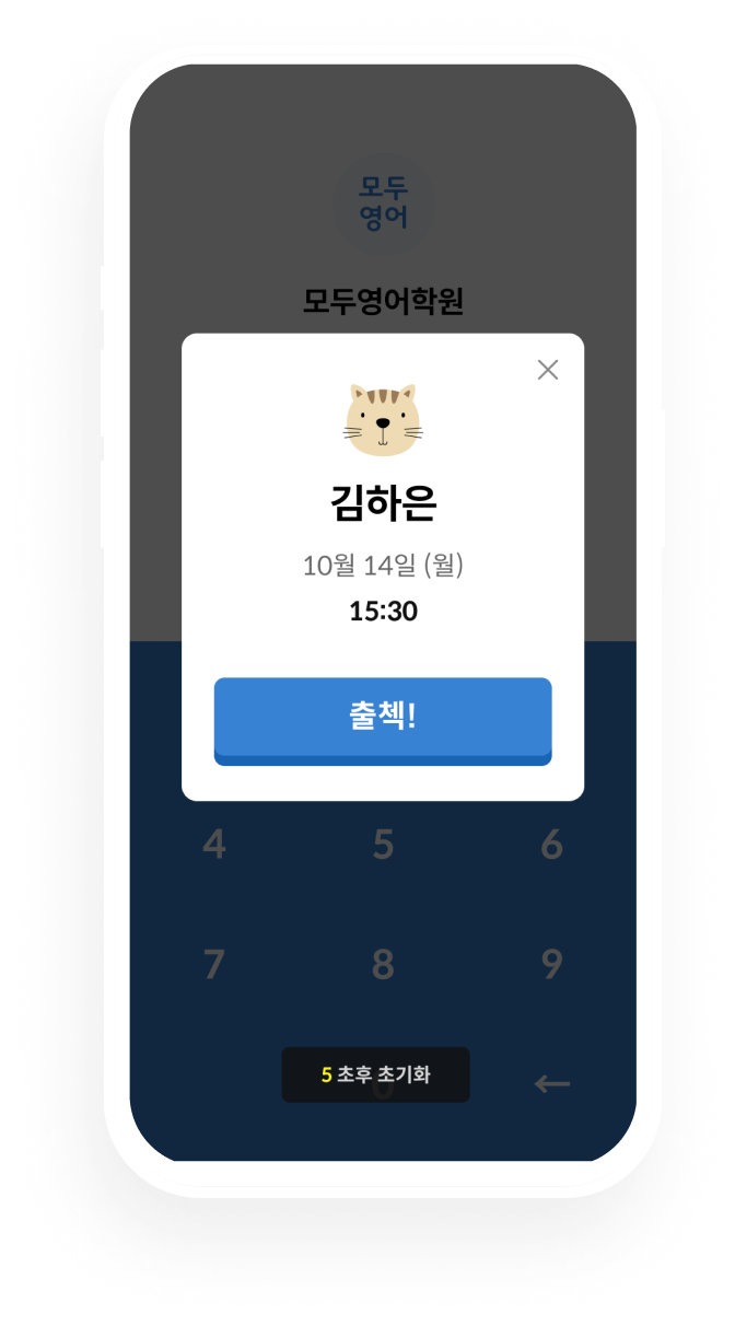 선생님은 물론, 아이들도 4자리 출결 번호만 입력하면 출첵 완료! 곧바로 등하원 알림톡이 발송됩니다.