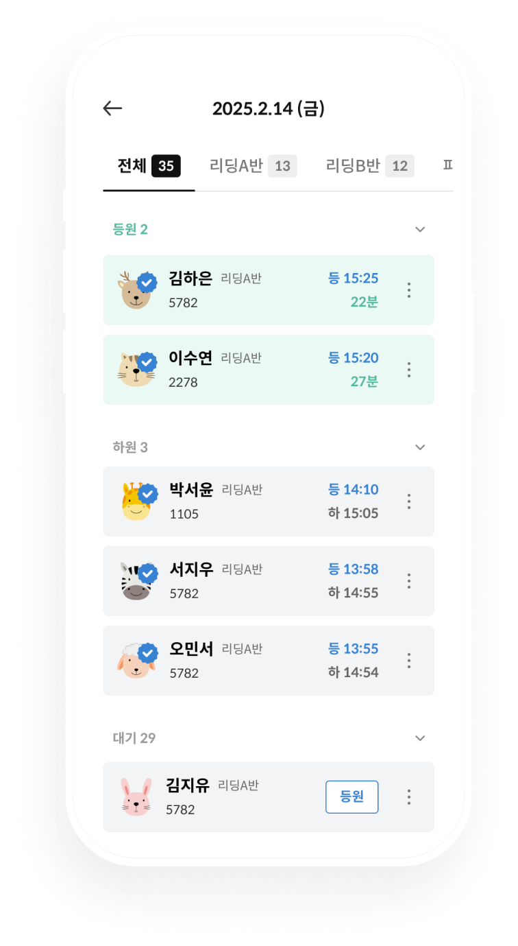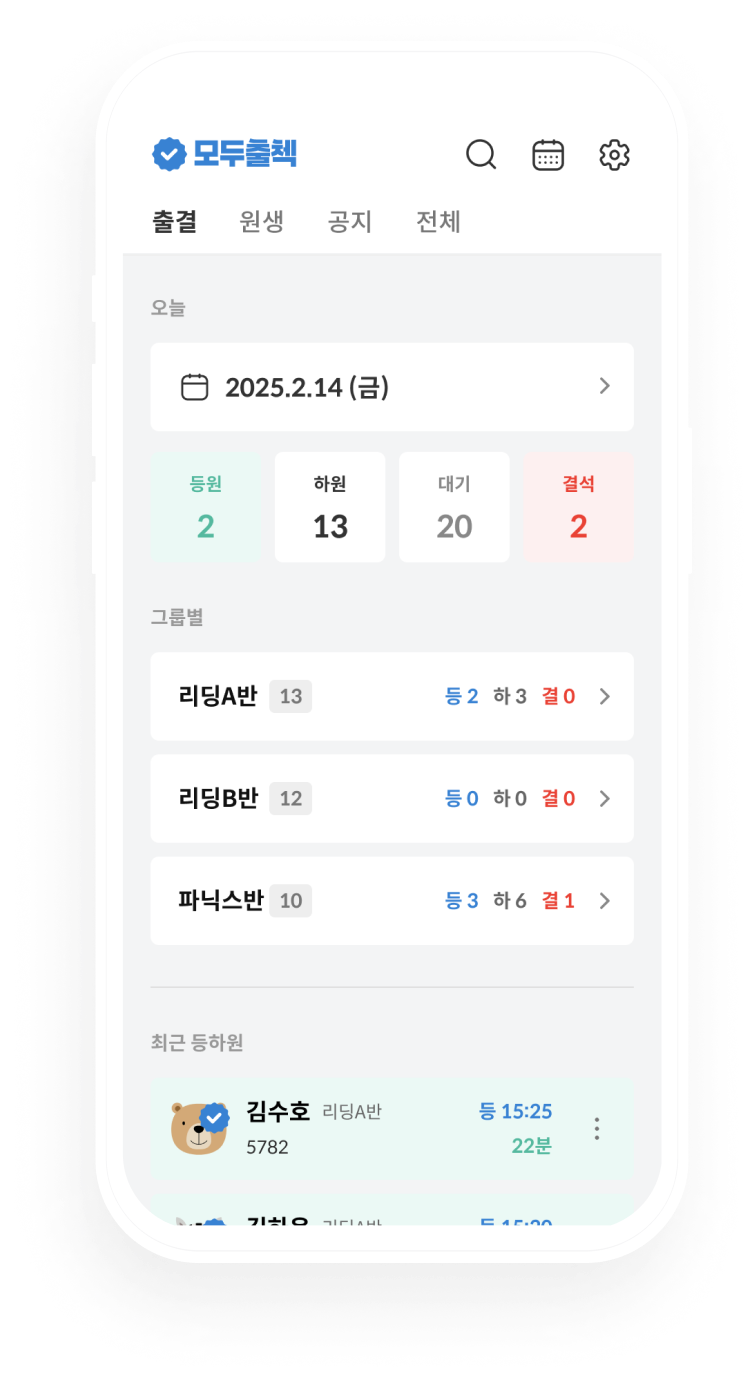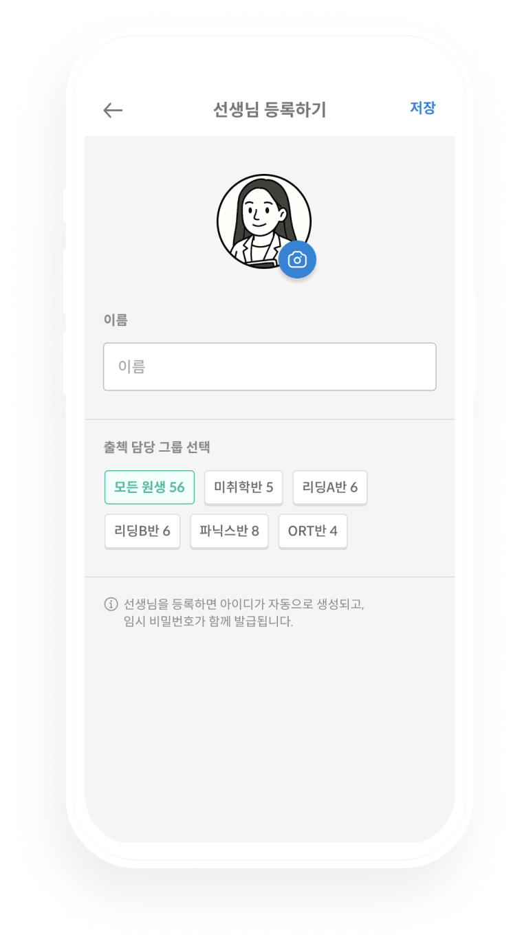 학원에 선생님이 여러명인가요? 이제 선생님별로 아이디를 부여하고, 그룹별로 출첵 관리를 맡길 수 있어요!