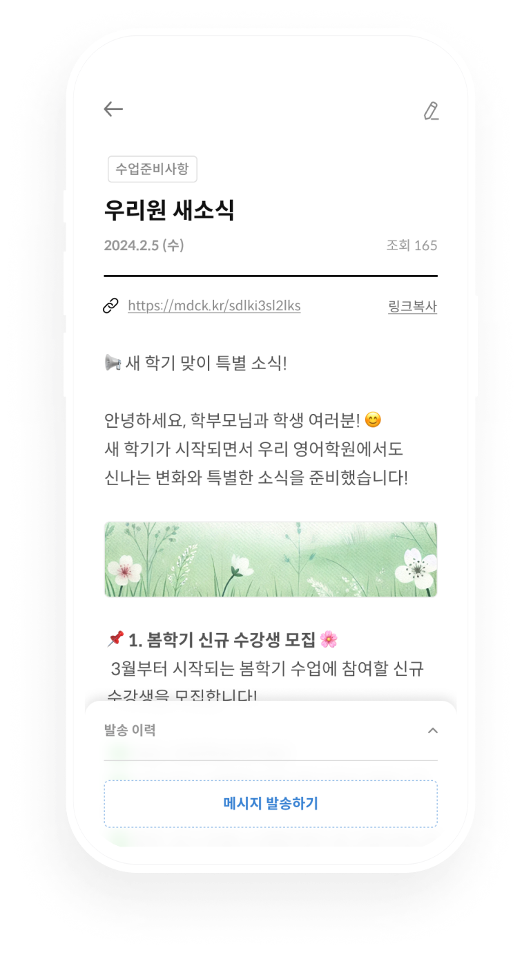 꼭 필요한 수업 관련 알림도 손쉽게 보낼 수 있어요. 받을 사람을 선택하고, 보내기만 하면 끝!