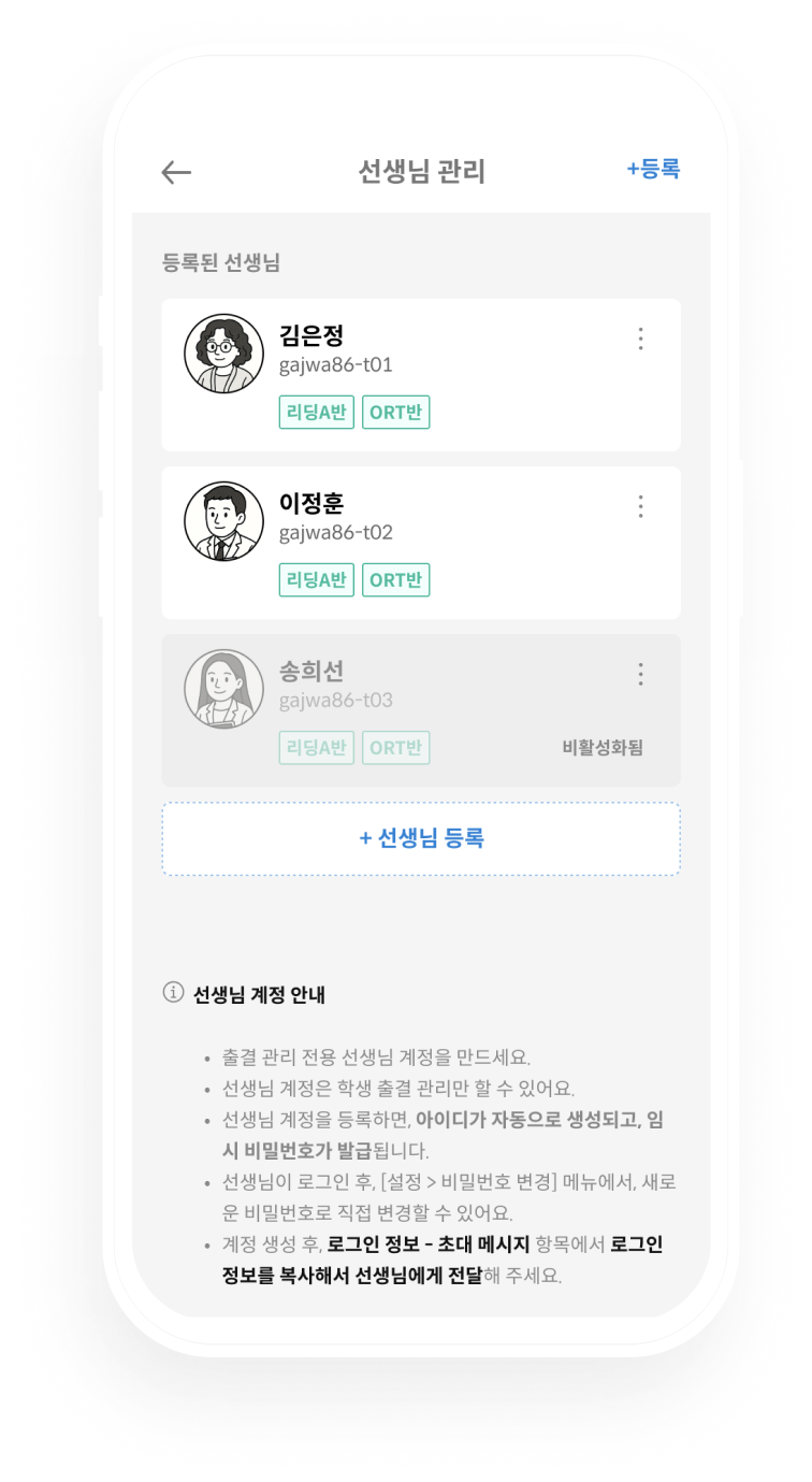 • 선생님 관리