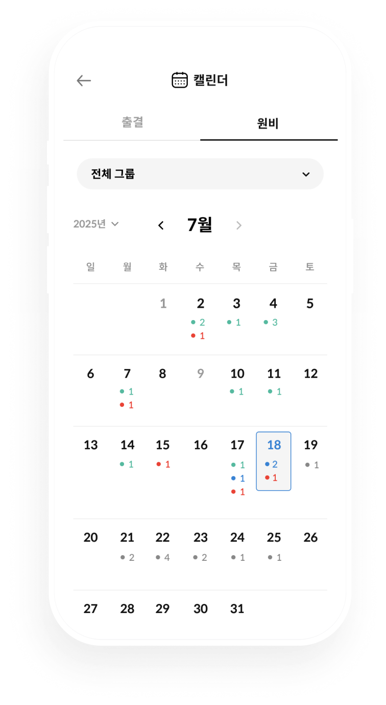 제한 없는 자유로운 그룹 관리 수업반으로 나누거나, 학교·학년별로 그룹핑할 수도 있어요. 원하는 대로 모아서 관리하고, 그룹별로 메시지도 손쉽게 보낼 수 있어요.