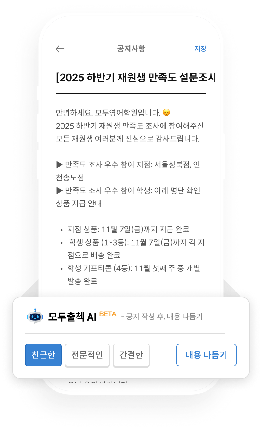 작성된 공지를 AI가 한번 더 다듬어 드립니다.