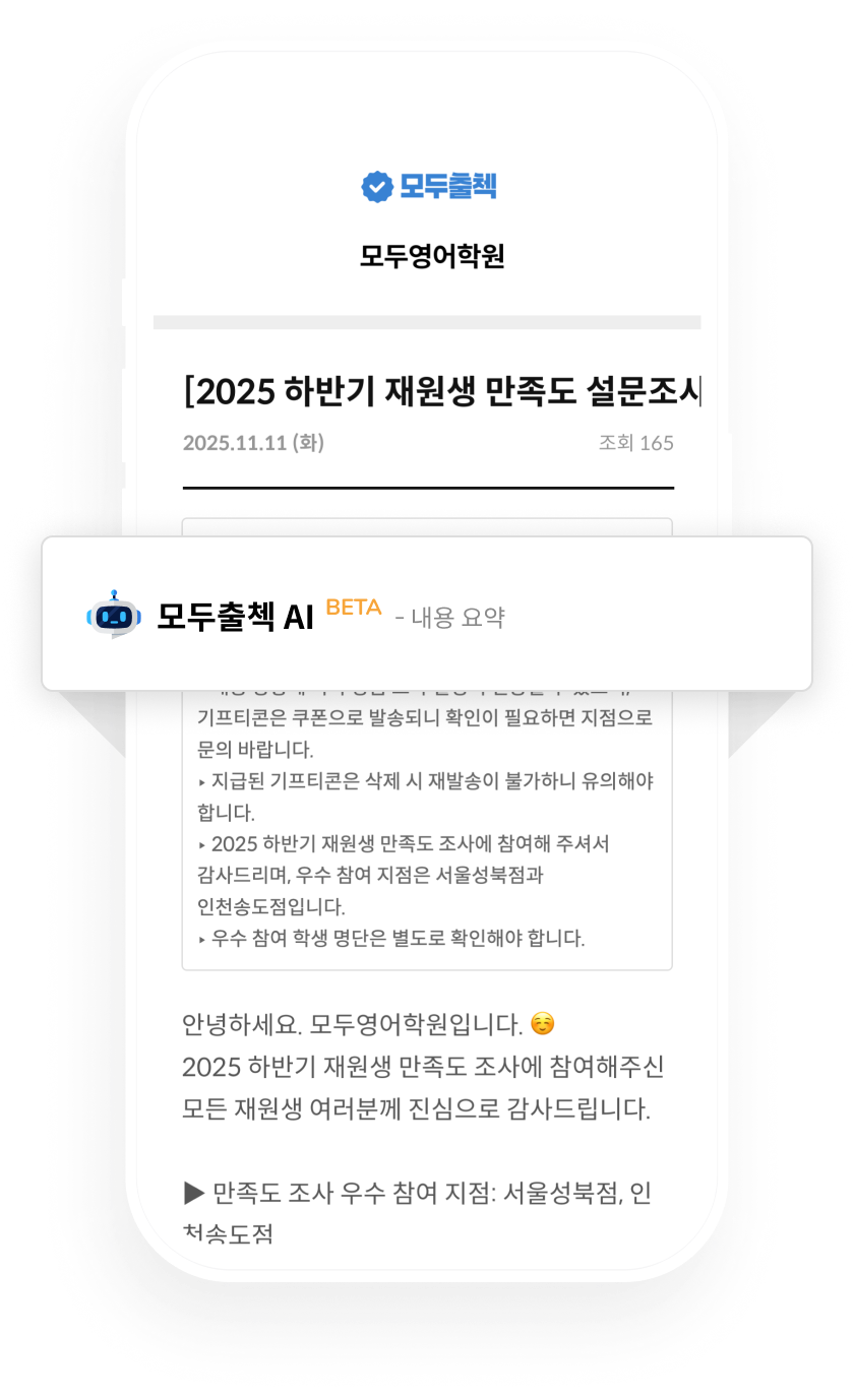 학부모가 공지를 열면, AI가 자동으로 핵심만 한눈에 볼 수 있게 요약해 드립니다.