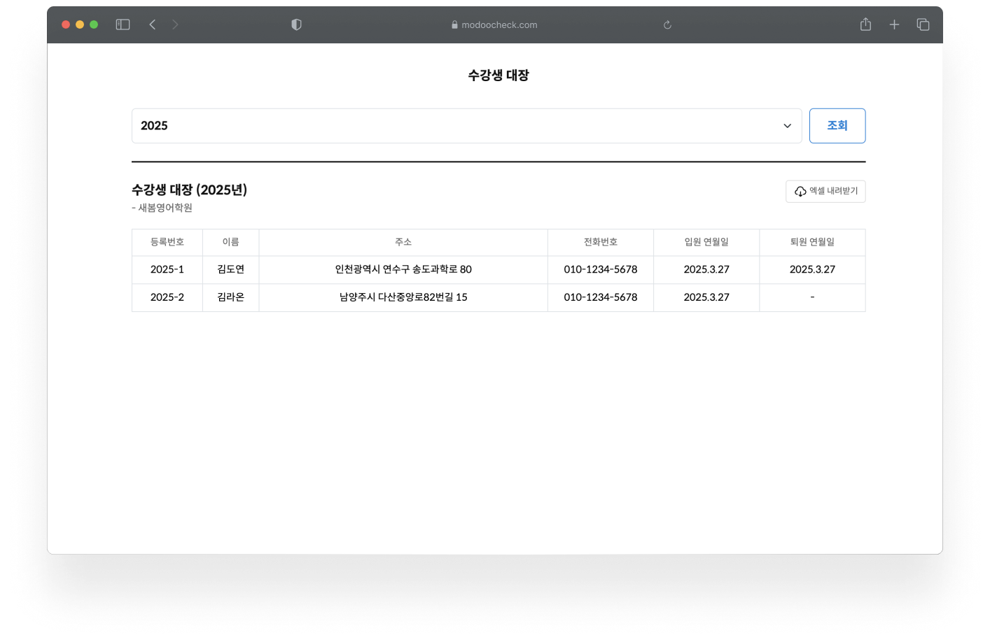 • 수강생 대장 내보내기